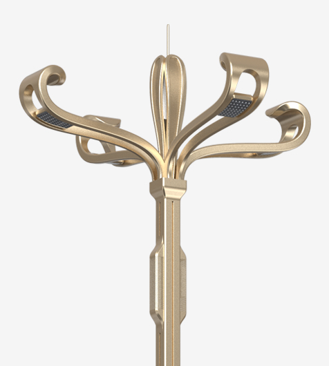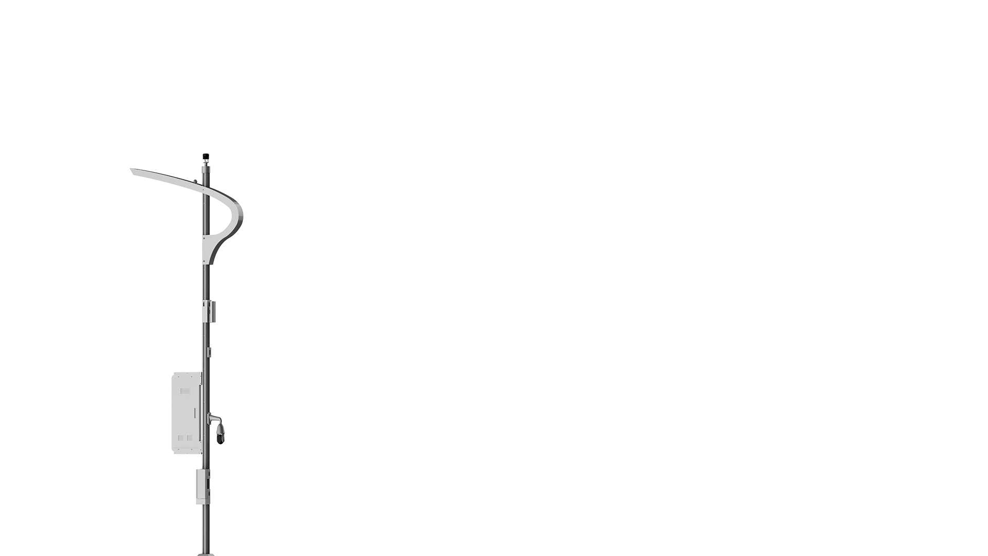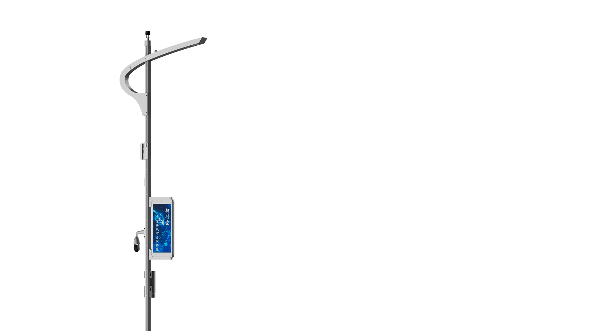 集文化创意为一体的新时空智慧路灯,为智慧城市建设提供完备的系统平台和解决方案, 集成智慧照明、城市广播、安防监控、一键求助、语音对讲、公共广播、Wi-Fi热点、5G基站、充电(汽车/手机)等系统功能, 实现信息全面化采集数据一体化整合。